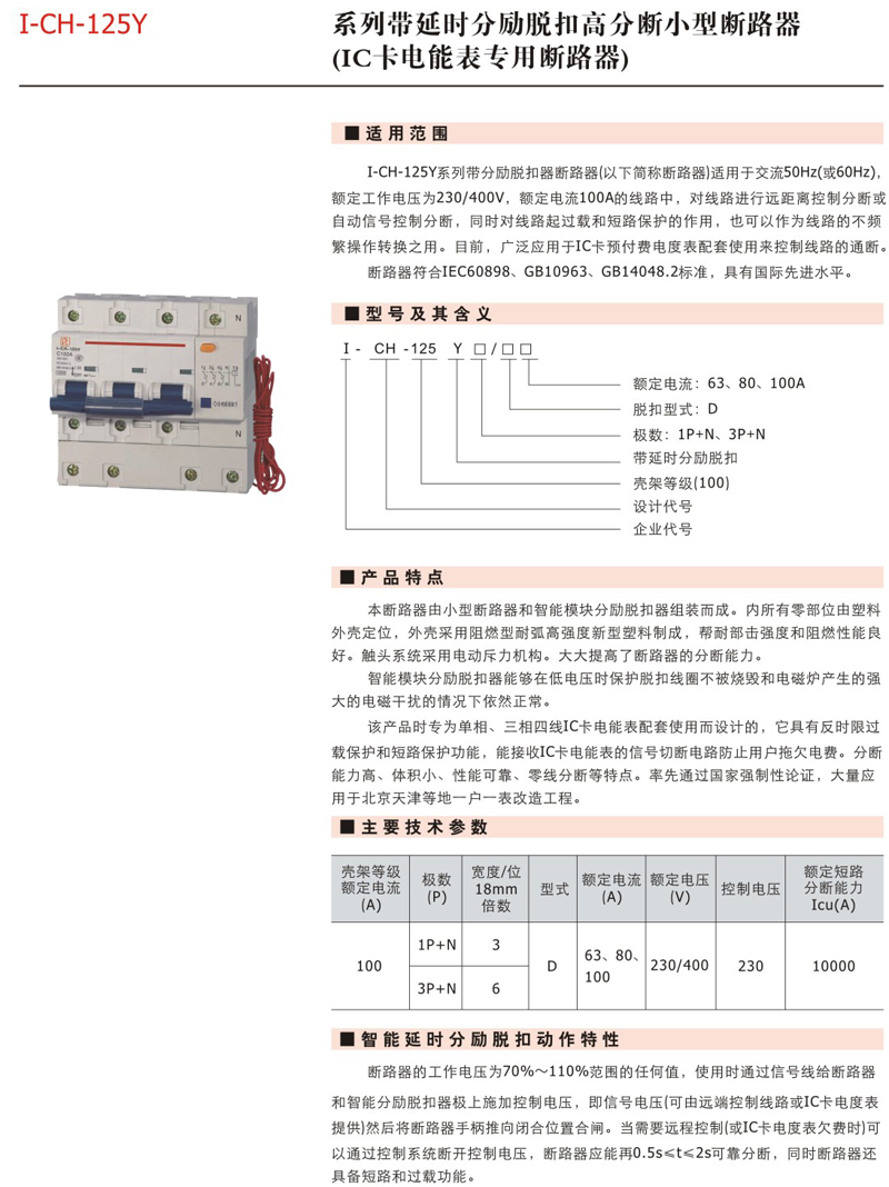 I-CH-125Y帶延時(shí)分勵(lì)脫扣器小型斷路器