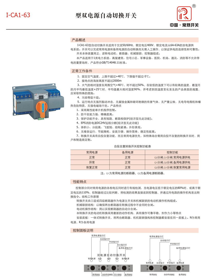 I-CA1-63系列自動轉(zhuǎn)換開關(guān)